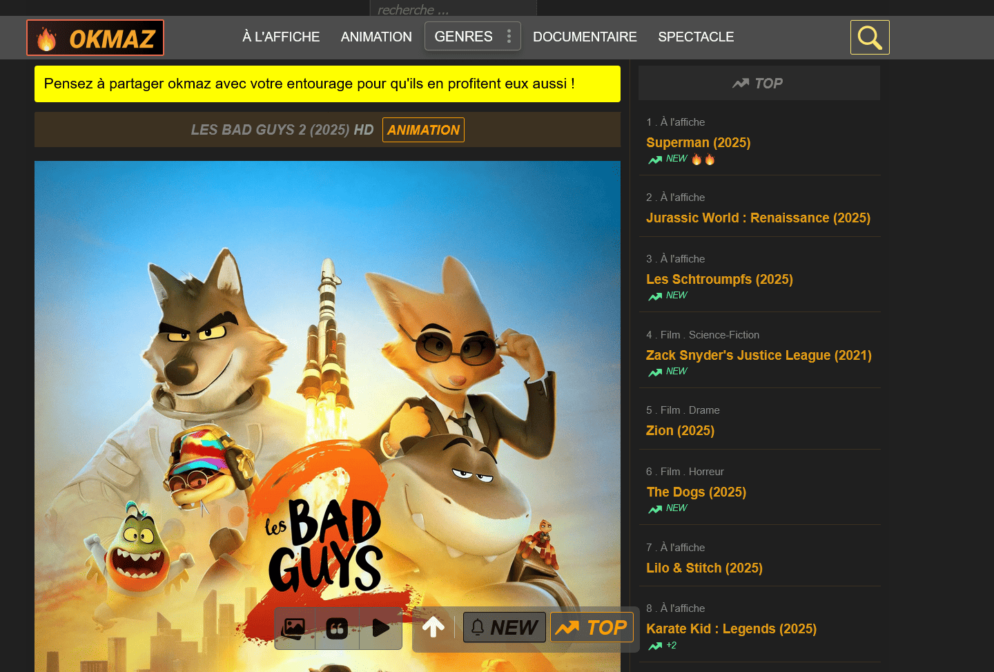 Okmaz fonctionne comme la plupart des sites de streaming gratuits :