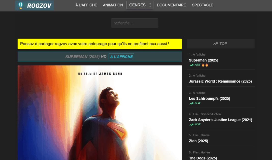 le site Rogzov attire par sa gratuité, son large choix de films et séries, et sa facilité d’accès.